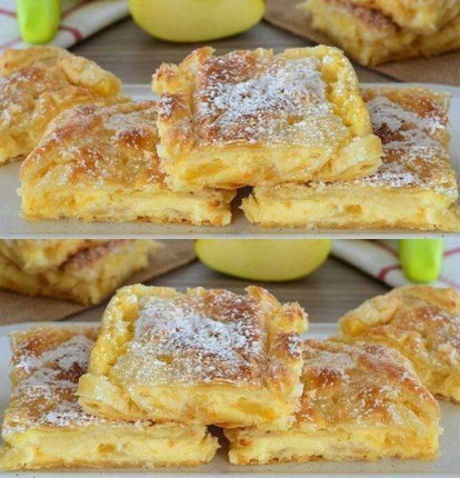 Ingredienti 3/4 di litro di latte Cannella, zucchero 5 mele 2 confezioni di crema pasticcera alla vaniglia in polvere 2 confezioni di pasta sfoglia 2 uova Ecco come si presenta: Continua la ricetta nella pagina successiva.